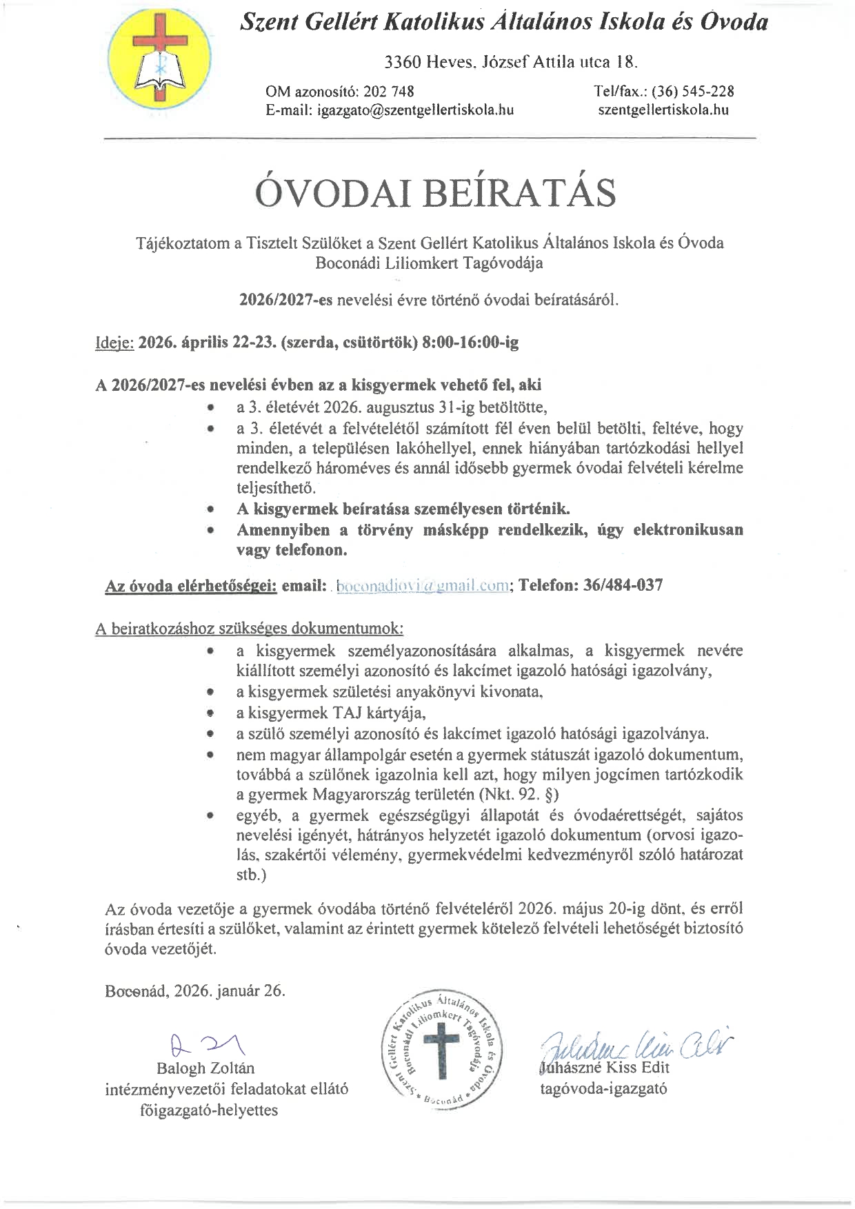 Óvodai beiratás 2026